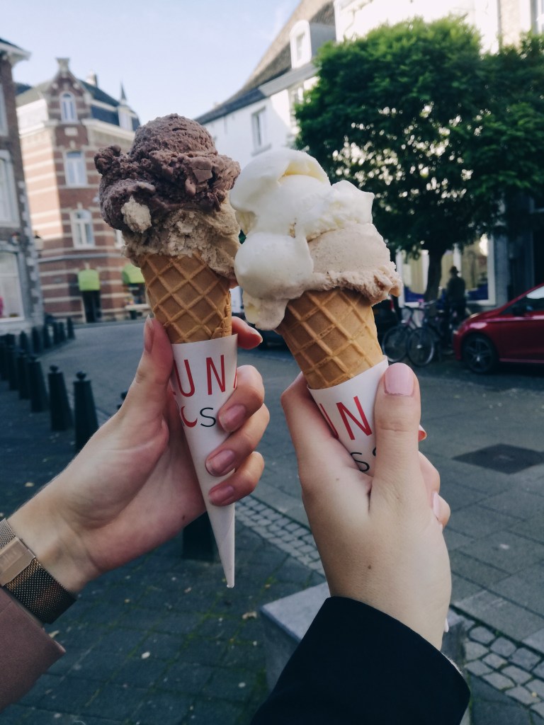 De volgende dag checkte we na een goed ontbijt rond 10.00 uur uit. We hadden besloten deze dag te gaan winkelen. Mijn vriendin had gezegd dat Maastricht een goede stad is om te shoppen, en dat kan ik alleen maar bevestigen, haha! We gingen na het winkelen naar de Markt waar ook het stadhuis van Maastricht zich bevindt. Het was heerlijk weer en daarom besloten we ‘s middags een ijsje te halen bij ijssalon Luna Rossa. Ook een tip van mijn vriendinnetje! Thank you!